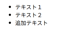 これで実際にHTMLで記載されたリストに、『追加テキスト』と記載した要素を新たに生成することができましたね。