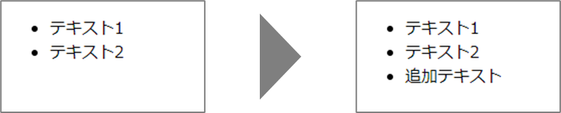 ここではHTMLで記載されたリストに、『追加テキスト』と記載した要素を新たに生成します。