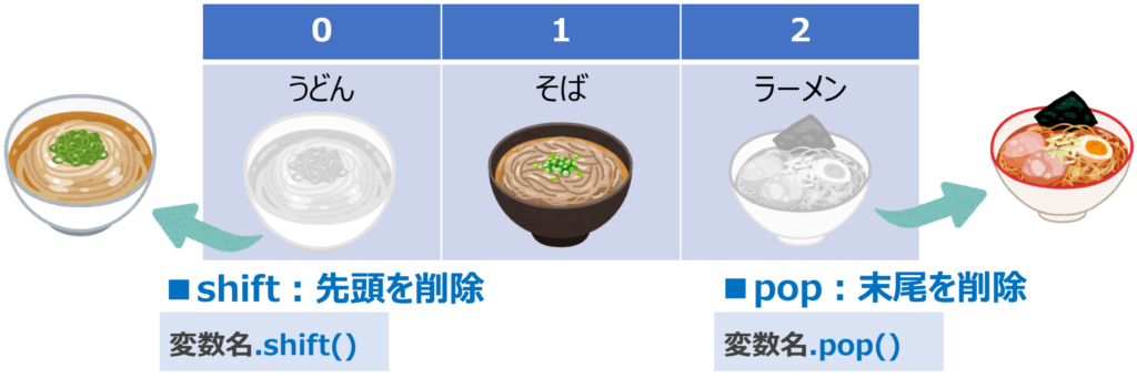 変数名.shift()■popメソッド