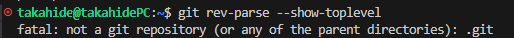 git rev-parse --show-toplevel正しい状態であれば以下のようにプロジェクトフォルダが出てきます。