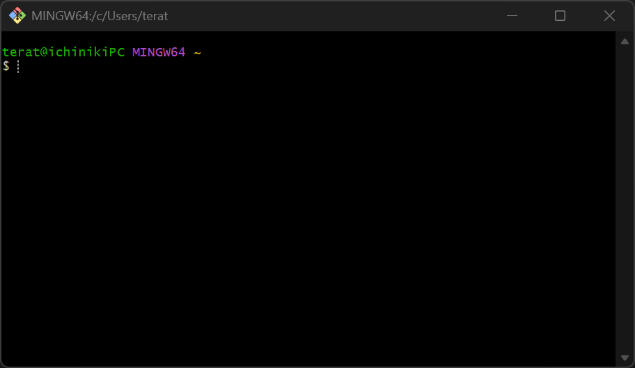 Git Bashを開くとこんな画面です。