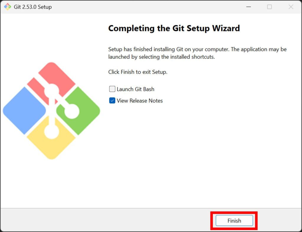 - 「Finish」を押したあとにGit Bash を自動で起動する