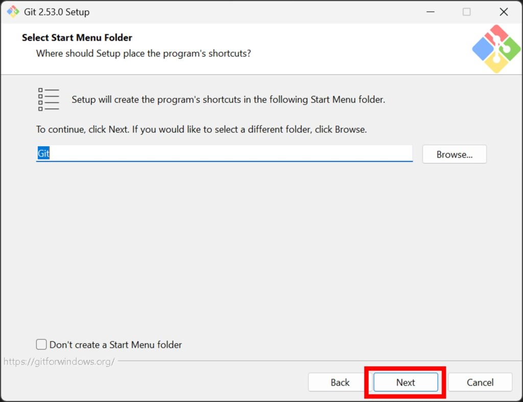 「Git」のままで「Next」を押下します。